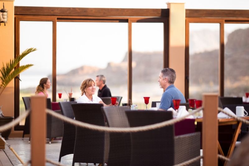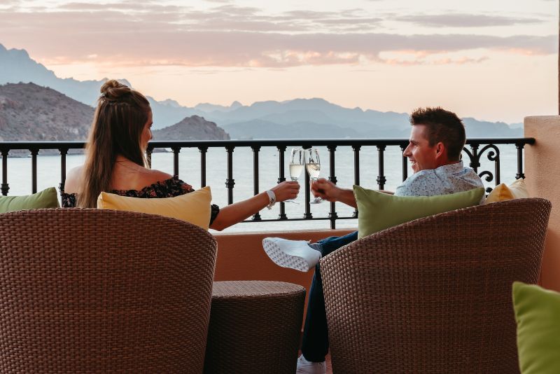 Experimenta una cena romántica en Danzante, donde pueden disfrutar de deliciosa comida y finos vinos mientras contemplas el pintoresco Mar de Cortés.