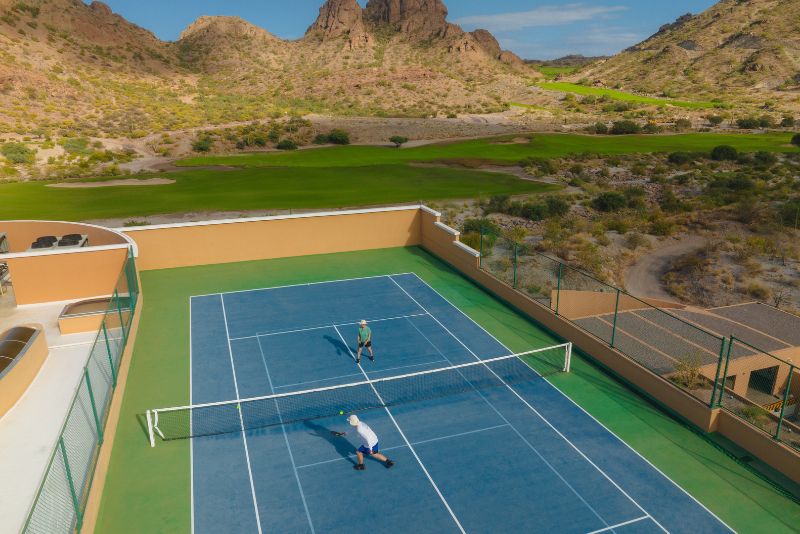 Desafíense mutuamente a un juego amistoso de tenis o pickleball en las bien mantenidas canchas de Villa del Palmar.
