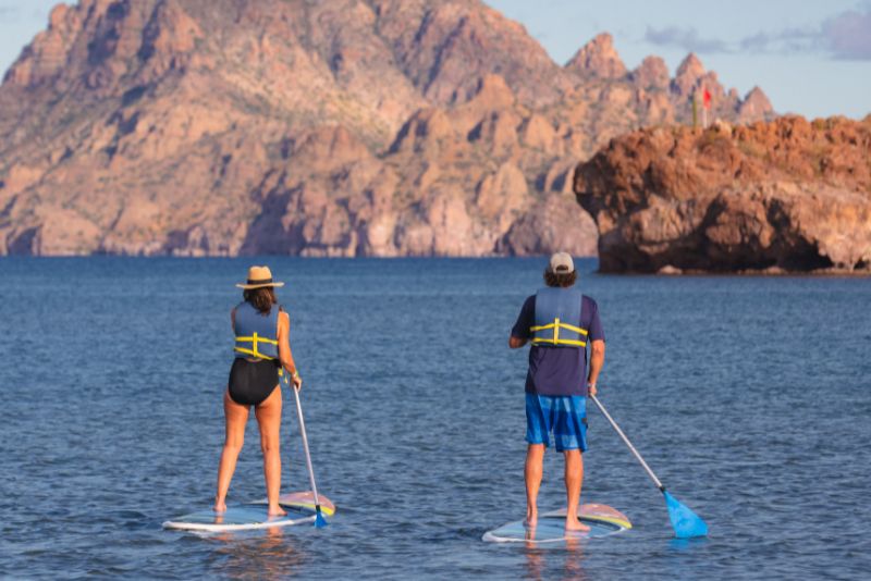 Deslízate por las aguas cristalinas del Mar de Cortés en una tabla de paddleboard y disfruta este tiempo con tu pareja.