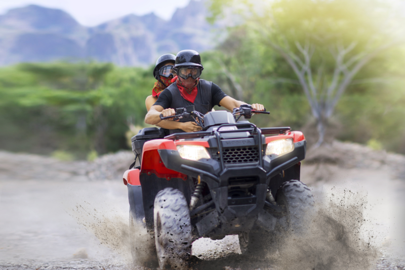 Las cuatrimotos incluyen casco, gafas, bandana, agua embotellada y prueba de manejo. Los tours de snorkel ofrecen visor, aletas, chaleco, toalla y bebidas. Todo el equipo de seguridad está incluido.
