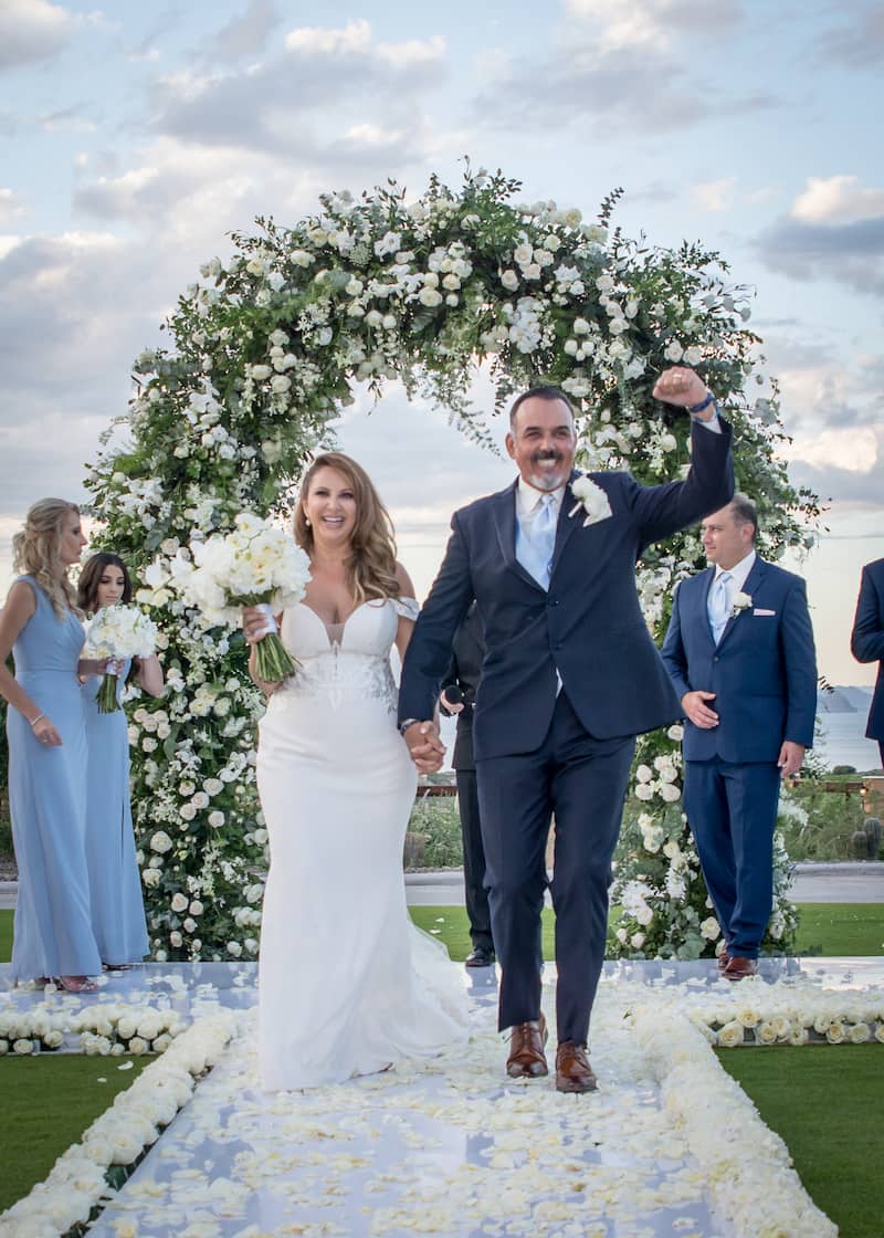 La alegría que emana de la celebración de una boda es contagiosa, y un buen fotógrafo capturará esos pequeños momentos al sentirse recargado y completamente feliz. Después de decir "Sí, acepto", este novio no pudo evitar celebrar, y entre las sonrisas de ambos y su puño levantado victoriosamente, puedes sentir la energía del momento. Estos instantes espontáneos en las bodas en Loreto son tan especiales como los que son posados y muestran las nuevas emociones del día.