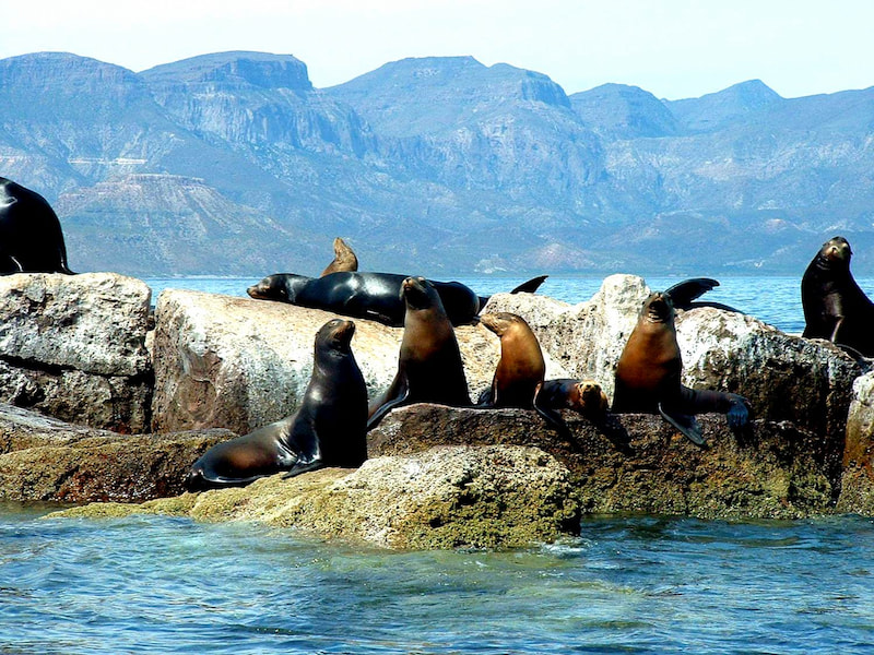 La vida silvestre en Loreto también incluye a los traviesos leones marinos quienes aman descansar en las rocas y sumergirse en las aguas de alrededor de Isla Coronado. Si bien pueden parecer muy ruidosos fuera del agua, una vez que se sumergen en el mar, son juguetones y rápidos mientras cazan peces. Darte un tiempo para observarlos mientras chapotean en el agua y toman el sol es algo maravillosamente gratificante al navegar por las Islas de Loreto.