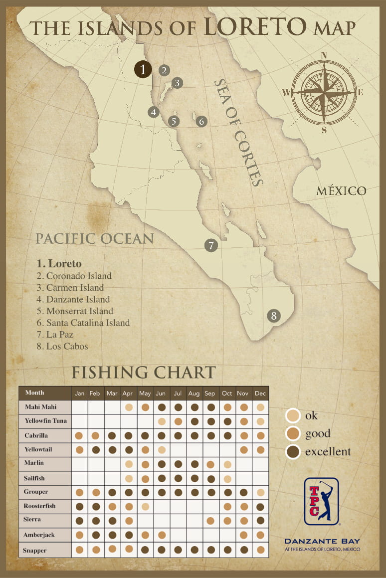 No importa qué época del año sea, la pesca en Loreto Baja California México siempre es una excelente opción para pasar el día, pero si lo que buscas es atrapar algún pez en específico, seguro querrás prestar atención a las temporadas de pesca en Loreto. Durante el verano y el otoño, no te sorprendas de encontrar el pico largo de un pez vela al revisar tu caña de pescar y, al final del día, es posible que estés consintiendo a tu paladar con un marlín recién capturado. Cuando el invierno y la primavera llegan, el pez gallo y el cola amarilla llegan al Mar de Cortés, y los colores brillantes del cola amarilla y la gran aleta dorsal del pez gallo te equiparán de espectaculares fotos que impresionarán a tus amigos en casa. Si bien estos peces sólo los encuentras en ciertas temporadas de pesca en Loreto, hay algunos peces que durante todo el año te recompensarán con una persecución desafiante, como el róbalo y huachinango.