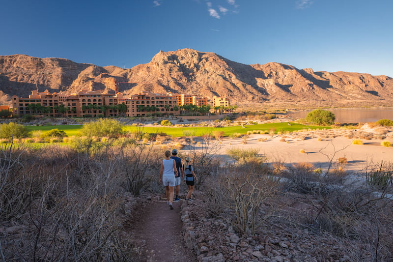 4. Apégate a los senderos. Esto te ayudará a mantenerte seguro durante la caminata para que no te pierdas ni te lastimes. El sendero en Villa del Palmar en las Islas de Loreto circula alrededor del campo de golf TPC Danzante Bay, brindando a los huéspedes panoramas del lugar, pero manteniendo una distancia adecuada para protegerte de las pelotas de golf voladoras.