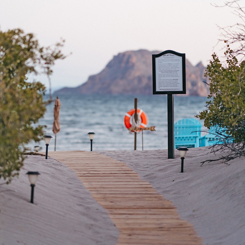 Cuando estés caminando por los alrededores del resort, es posible que te sorprendas al encontrarte con estas sillas azules con vistas a Bahía Danzante. Mientras te sientas aquí, te sentirás como si estuvieras en tu propia playa privada, a kilómetros del resto del mundo. Tomate una foto sentado en estas sillas para capturar la impresionante serenidad de Loreto, y luego simplemente sumérgete en la pacífica vista y relajante brisa marina.