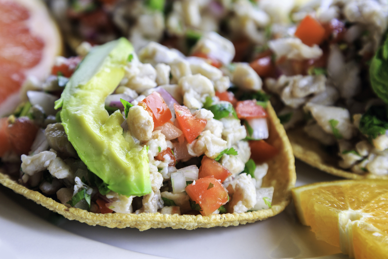 1. Ceviche - Pescado o mariscos frescos marinados en jugo de limón con tomate, cebolla, cilantro y chiles.