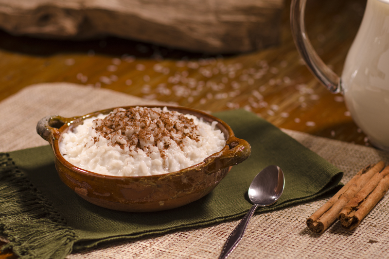 4. Arroz con Leche - Arroz cocido en leche con canela y pasas.