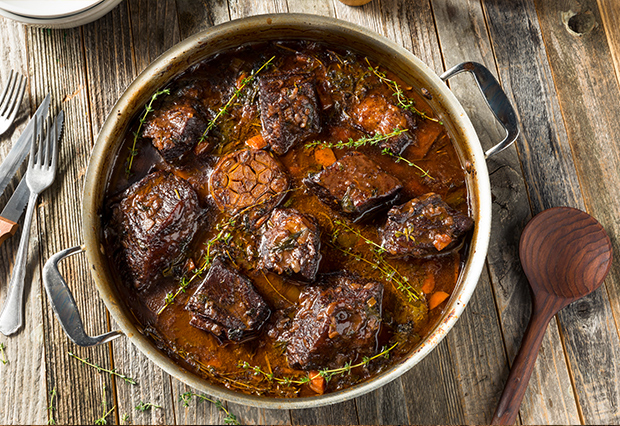 Esta receta de costillas lleva algo de tiempo, pero para aquellos que aman cocinar o experimentar con nuevas opciones en la cocina, el tomarse el tiempo para aprender una nueva receta y cocinar para sus seres queridos hará que las fiestas sean alegres y radiantes. Después de saltear la carne y las verduras, el vino tardará un tiempo en reducirse y la carne se cocinará en el horno durante 2 ½ horas, lo que te dará tiempo para concentrarte en tus otras recetas navideñas y en los preparativos de la cena.