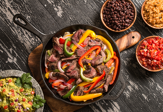 Las recetas para preparar en sartén son famosas por ser comidas fáciles de realizar, así que, para agregar un poco de sabor a tu cena navideña, prueba esta receta de fajitas de res. Lo que hace que esta sea una de las más fáciles ideas para la cena de Navidad es que la carne y las verduras se cocinan todas juntas en un solo sartén, lo que facilita mucho la limpieza al finalizar. Debido a que las fajitas no se combinan tan fácil con las tradicionales recetas navideñas para guarniciones, despierta tu creatividad con una ensalada de col, calabacitas asadas o sopa de alubias negras.