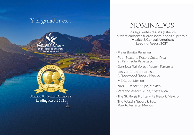 Además de ser nombrado Resort Líder en México y Centroamérica este año, Villa del Palmar en las Islas de Loreto también ha sido nominado como Resort Líder en el Mundo y Resort Familiar Líder en el Mundo. En el pasado, ha ganado premios de la Revista Condé Nast Traveler, Wine Spectator, TripAdvisor, Golf Magazine y USA Today. Estos premios representan las opiniones tanto de los profesionales de la industria de viajes como de huéspedes cotidianos como tú. Para tus próximas vacaciones, deja que estos premios sean tu guía para distinguir entre los mejores resorts en México.
