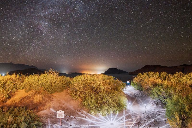 •Vista: Panorámicas de acantilados, aguas esmeralda y desierto que se funde con el mar. Observa delfines, lobos marinos y ballenas, o contempla las estrellas bajo los cielos más despejados de México.